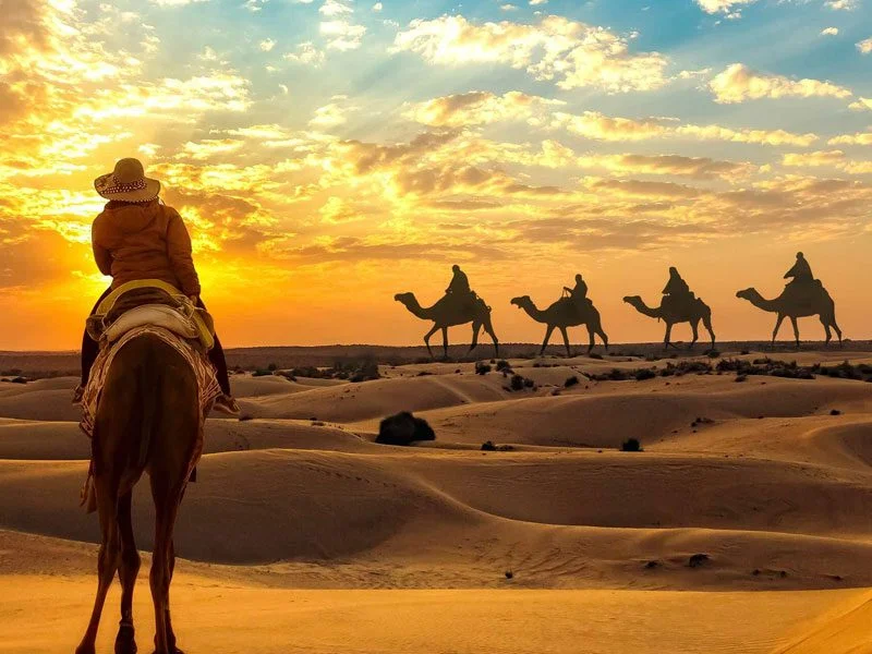 Spend the day discovering the many treasures of Jaisalmer, starting with the iconic Jaisalmer Fort, a living fort that is home to shops, temples, and residential areas. Wander through its narrow lanes and admire the intricate carvings on its walls. Visit the grand Patwon Ki Haveli and Nathmal Ki Haveli, which showcase the exquisite craftsmanship of the region. In the evening, head to the Sam Sand Dunes for a camel safari and enjoy a cultural performance under the starlit sky, immersing yourself in the magic of the desert.